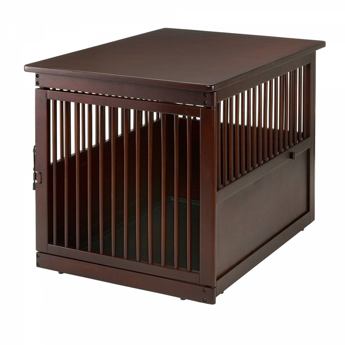 It saves space by doubling as a stylish end table as well as a pet containment and leisure space. Multiple vents provide a 360° view and a well-ventilated environment for your pet. Includes a removable sliding tray for easy cleaning. The door can stay fully open for easy access to your pet and includes a side stopper to keep the door in place. You and your pet will both feel at home and in style with the Wooden End Table Crate.