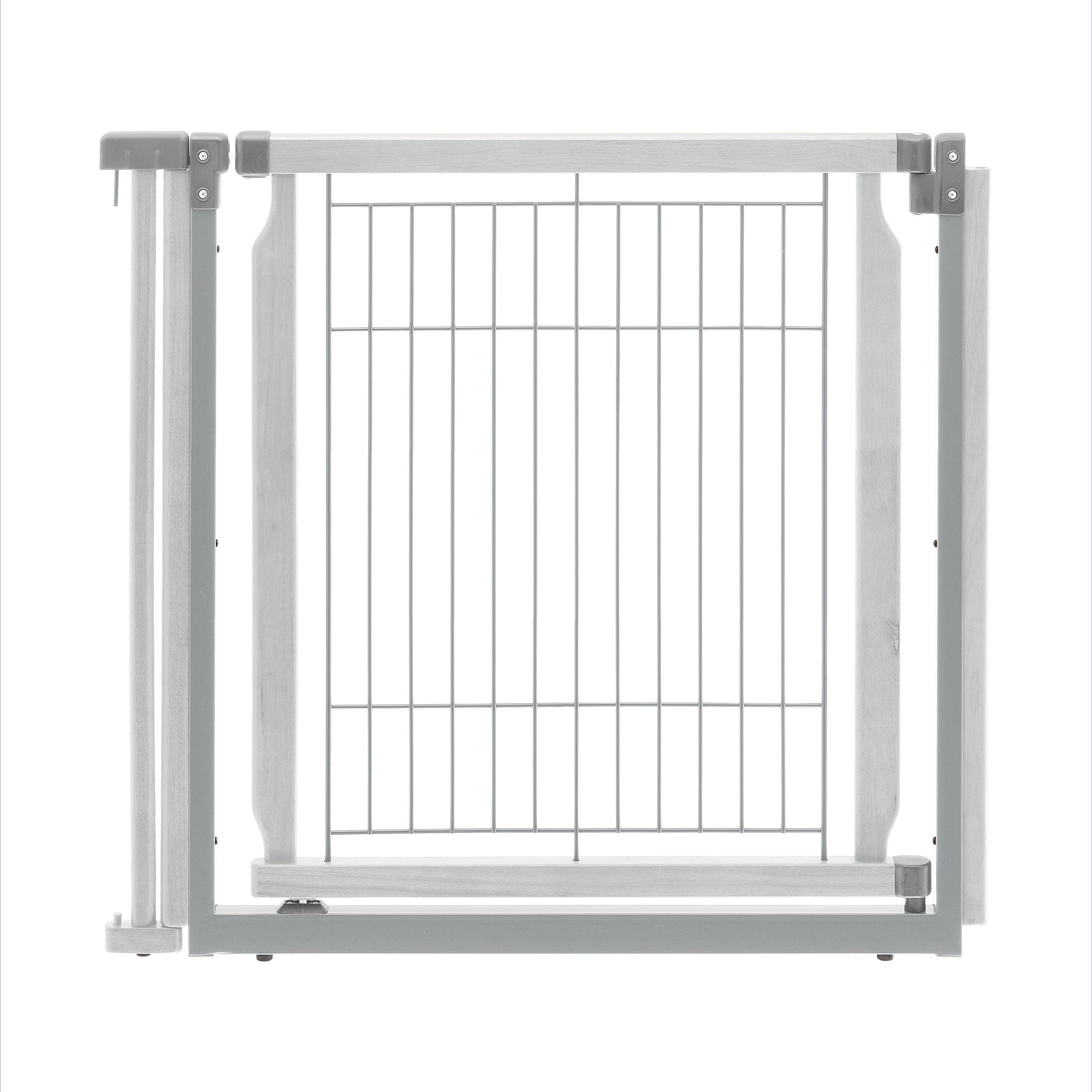 General Product Information: Gate door opening is 19½" wide. Medium gate is recommended for small to medium dogs 8.8 to 44 lbs (4-20 kg). Large gate is recommended for medium to large dogs 17.6 to 88 lbs (8-40 kg). Instruction manual included. 1 ¾" space between wire slats. Wire is 7 Gage or 0.144". Made from eco-friendly, sustainable Rubberwood.